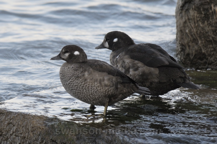 # Title Harlequin Ducks Description A pair of Harlequin Ducks (Histrionicus histrionicus), an immature female and male, stands on a partially-submerged ledge along the shore of Lake Michigan. Location and Date Foster Avenue Beach Chicago, Illinois, USA 11/9/10 (Note: pre-2000 dates are approximate) Credit Mark Swanson/Swanson Media Camera/Source Nikon D300 DSLR Lens AF VR-Nikkor 80-400mm f/4.5-5.6D ED Model/property releases available? Not applicable/Not applicable Keywords Harlequin Duck (Histrionicus histrionicus), Family Anatidae, Order Anseriformes (Ducks/Geese/Swans), Class Aves (Birds), Kingdom Animalia (Animals), Subfamily Merginae (sea ducks) |