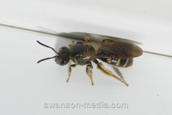 # Title Sweat Bee (Lasioglossum sp.) Description A Sweat Bee (Lasioglossum sp.) clings to an exterior door frame near a woodland. Location and Date — Swannanoa, North Carolina, USA 4/25/24 (Note: pre-2000 dates are approximate) Credit Mark Swanson / Swanson Media Camera/Source Nikon D7100 DSLR Lens AF-S VR Micro-Nikkor 105mm f/2.8G IF-ED Model/property releases available? Not applicable/No Keywords Sweat Bees (Genus Lasioglossum), Tribe Halictini, Sweat and Furrow Bees (Subfamily Halictinae), Sweat Furrow Nomiine and Shortface Bees (Halictidae), Bees (Epifamily Anthophila), Bees and Apoid Wasps (Superfamily Apoidea), Hymenoptera, Class Insecta (Insects), Phylum Arthropoda (Arthropods), Kingdom Animalia (Animals) |