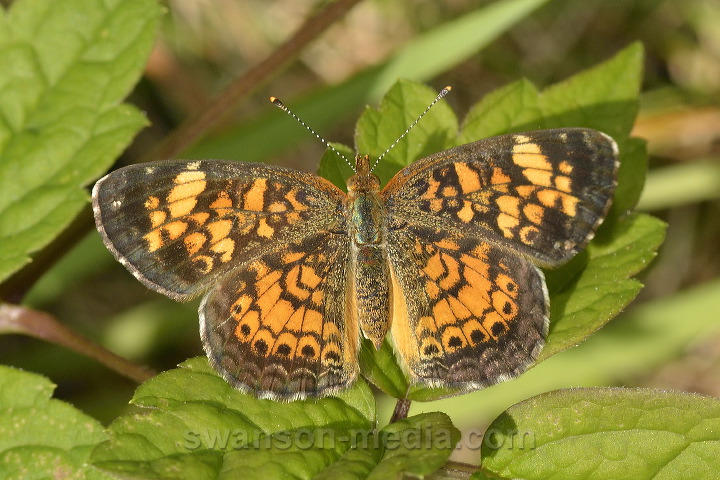 # Title Pearl Crescent Description A Pearl Crescent (Phyciodes tharos) perches on a plant in the Blue Ridge Mountains. Location and Date Linville Land Harbor near Linville, North Carolina, USA 9/12/12 (Note: pre-2000 dates are approximate) Credit Mark Swanson/Swanson Media Camera/Source Nikon D300 DSLR Lens AF Micro-Nikkor 105mm f/2.8D Model/property releases available? Not applicable/Not applicable Keywords Brushfooted Butterflies (Nymphalidae), Butterflies and Skippers (Rhopalocera), Butterflies and Moths (Lepidoptera), Class Insecta (Insects), Phylum Arthropoda (Arthropods), Kingdom Animalia (Animals), Pearl Crescent (Phyciodes tharos), True Butterflies (Papilionoidea), Crescents/Checkerspots/Anglewings & kin (Subfamily Nymphalinae) |