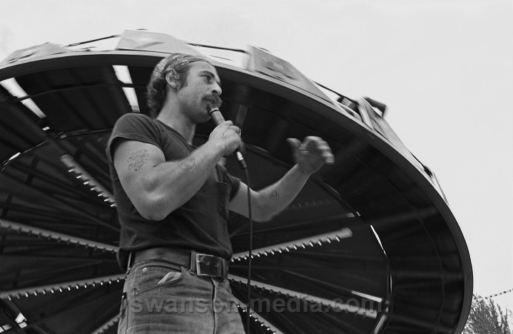 # Title Carny Man Description A worker talks into a microphone near a carnival ride. Location and Date South Florida Fair West Palm Beach, Florida, USA 7/1/81 (Note: pre-2000 dates are approximate) Credit Richard Swanson/Swanson Media Camera/Source Olympus OM-1 SLR (35mm black & white negative) Lens Olympus Zuiko 50mm Model/property releases available? No/No Keywords carnivals, carnival rides, fairs, carny, spinning wheels, Caucasians |