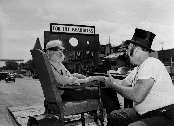 # Title For the Beardless (#4) Description A man pleads for leniency before being placed into (humorous) prisoners' stocks for beardless men at the Vassar, Michigan, centennial celebration. Location and Date — Vassar, Michigan, USA 7/28/49 (Note: pre-2000 dates are approximate) Credit Richard Swanson/Swanson Media Camera/Source Graflex Pacemaker Speed Graphic (4x5 inch black & white negative) Lens Kodak Ektar 6" (152mm) f/4.5 Model/property releases available? No/No Keywords beards, humor, small towns, prisoner stocks, punishment, men, Caucasians, 1940s, 1950s, black and white, black & white |