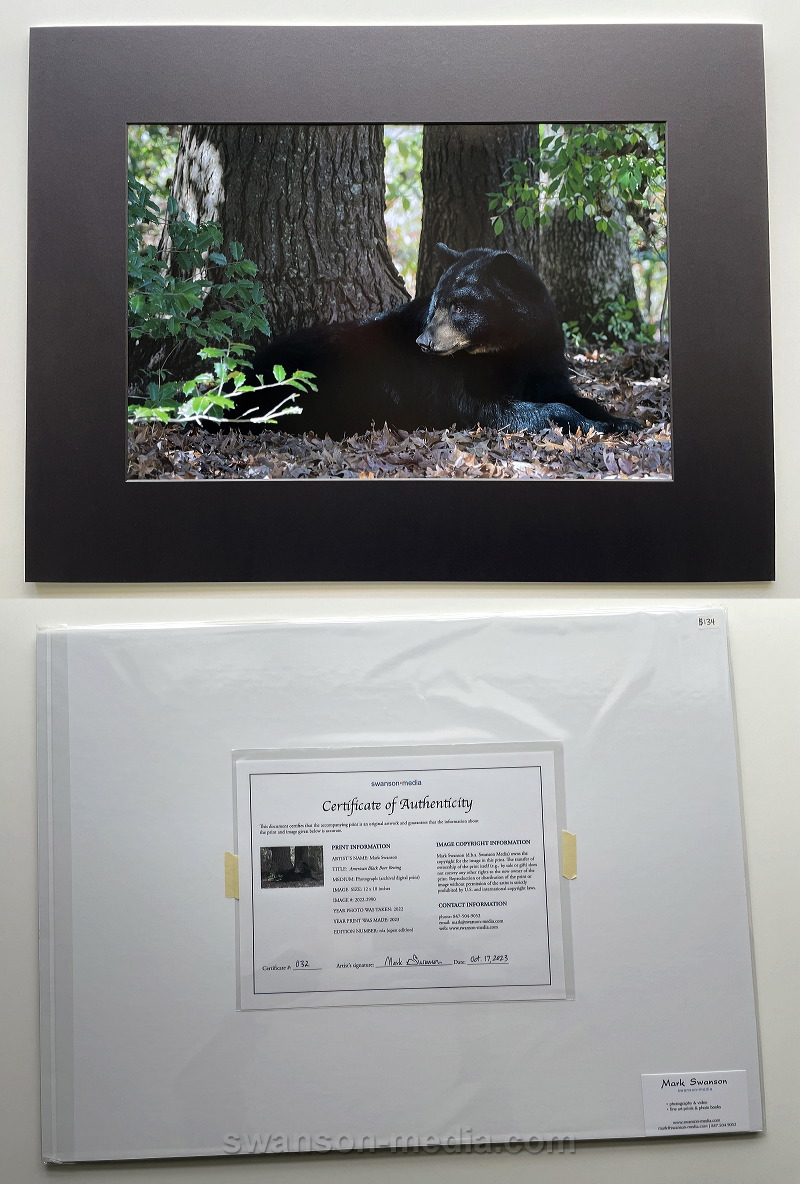 Image/Print Size and Mat Size 12x18" print in 18x24" black mat